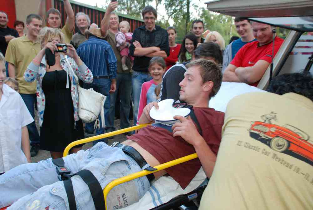 Následné opětné vystoupení kapely bylo ale narušeno zásahem příslušníků VB a zatčením několika podvratných živlů. O narušené pacienty se postaral kolega docenta Chocholouška. 😀