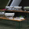 Naše parta asi deseti lidí se před deštěm uchýlila pod ochranu převislé střechy protější chatky. Každý přinesl, co měl, a že se toho tedy našlo! Pochopitelně, že likvidace těchto bohatých zásob se ve veeelmi družné debatě přítomných protáhla až do pozdních nočních hodin, takže nakonec jsme umořili i ten protivný déšť. Kupodivu nikdo z lidí, bydlících v kempu okolo, si nestěžoval, a tak jim patří též náš dodatečný dík za projevenou toleranci.